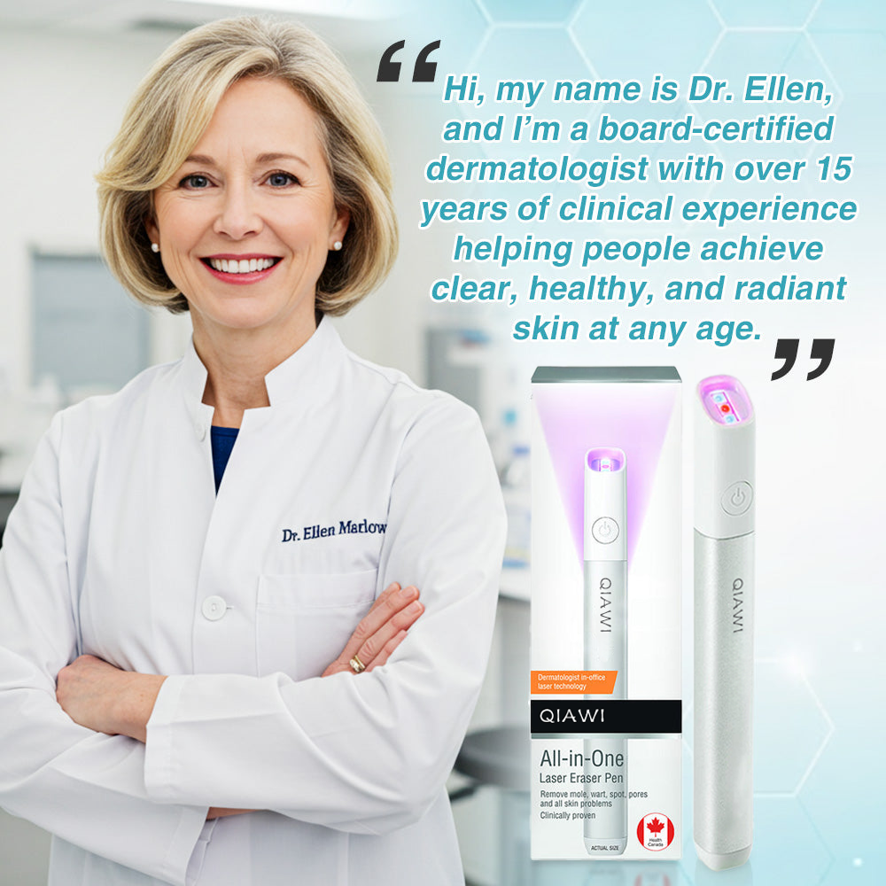 QIAWI™+ All-in-One Laser Eraser Pen uses medical-grade CO₂ laser technology to remove moles, skin tags, warts, and pigmentation spots safely at home.